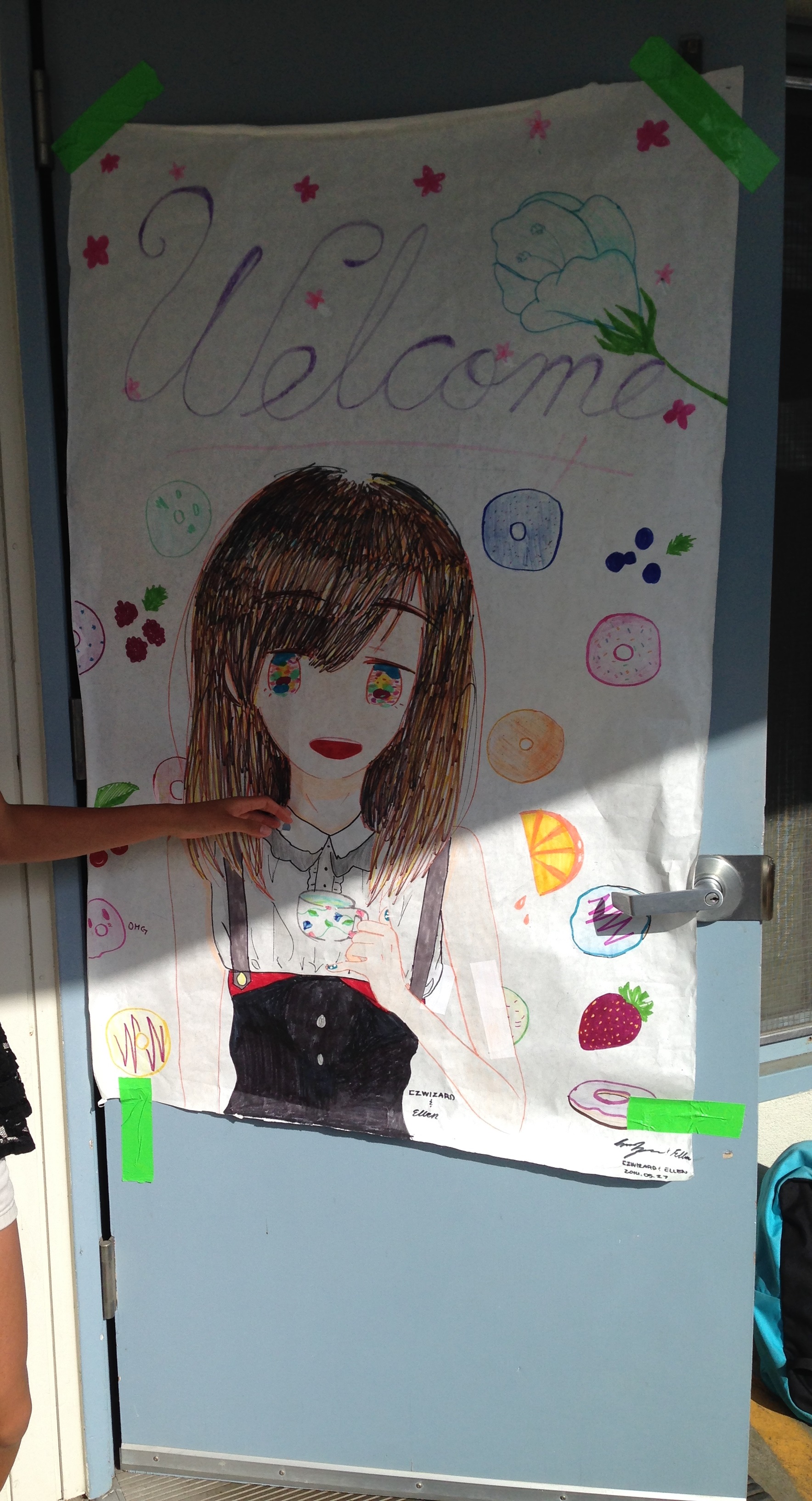 These kids all recited poems: some read their own work, others read Shakespeare, Robert Frost, Charles Mackay, Langston Hughes, Amy Lowell, William Blake. They read from folded pieces of paper, books, their iPhones and notes scribbled on their hands. A few parents read poems. Another teacher recited Maya Angelou’s poem “Still I Rise.” I stood up to the “stage” and recited Christina Rossetti’s “A Birthday.” There were poems by Jack Prelutsky and Shel Silverstein. After every reading, fingers snapped and the bongos rumbled. There was a wide range of work, from playful and silly to lyrics and ballads of real depth. A couple of lines resonated with me; Frost’s “I am the master of my soul” and Angelou’s quote “Try to be a rainbow in someone else’s cloud.” Ms. Emerson closed with a moving tribute to Maya Angelou. And through it all we enjoyed cookies, tea, juice and a great vibe.