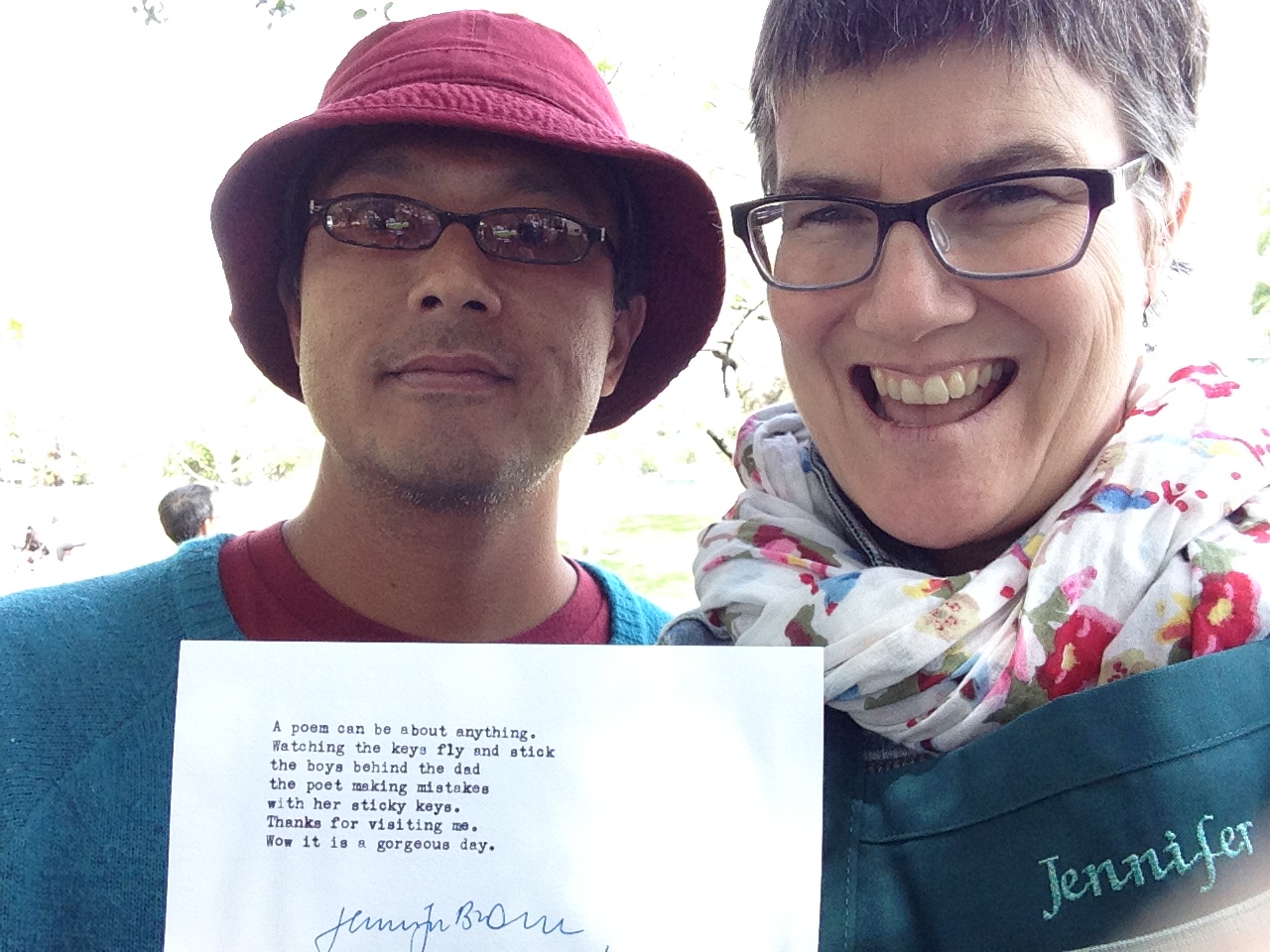 What a great day I had at the Cupertino Cherry Blossom Festival yesterday. I posted all my photos on Facebook, and you can see them at this link. David Perez, Erica Goss and I did our magic with typewriters and the imagination of strangers.
