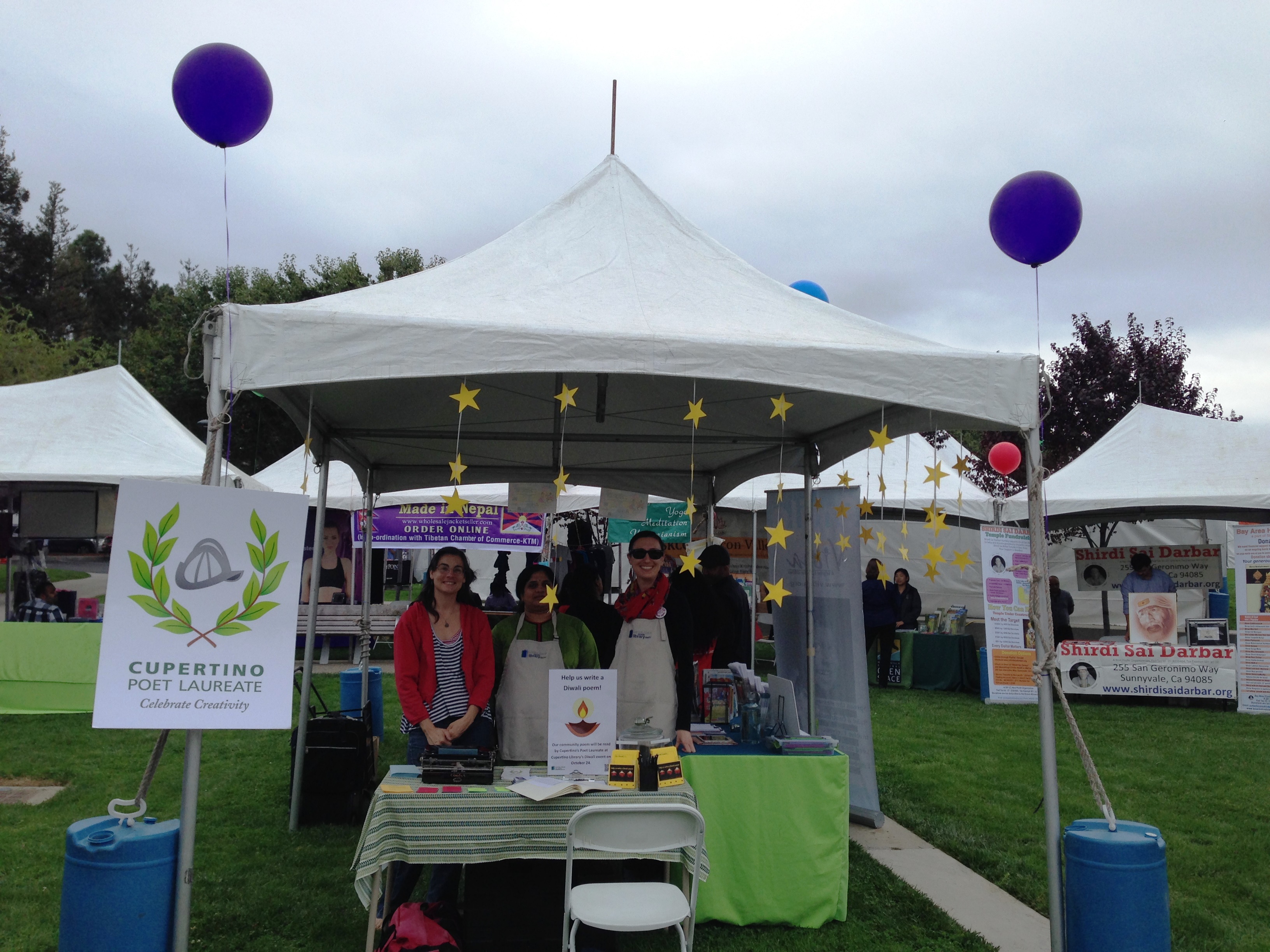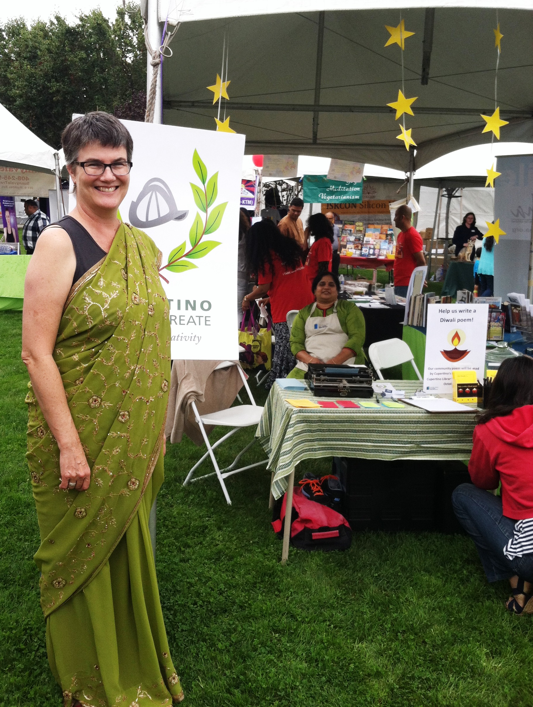 On October 24, 2015, the Cupertino Library hosted a Diwali Celebration of song, dance, crafts, and food. Amanda Williamsen and Jennifer Swanton Brown (incoming and outgoing poets laureate) presented two poems, one each they had composed from comments and memories shared by visitors to the Cupertino Library booth at the Chamber of Commerce Diwali Festival the previous weekend. Many thanks to Gayathri Kanth, the Cupertino Community Librarian for inviting us and making us feel welcome.
