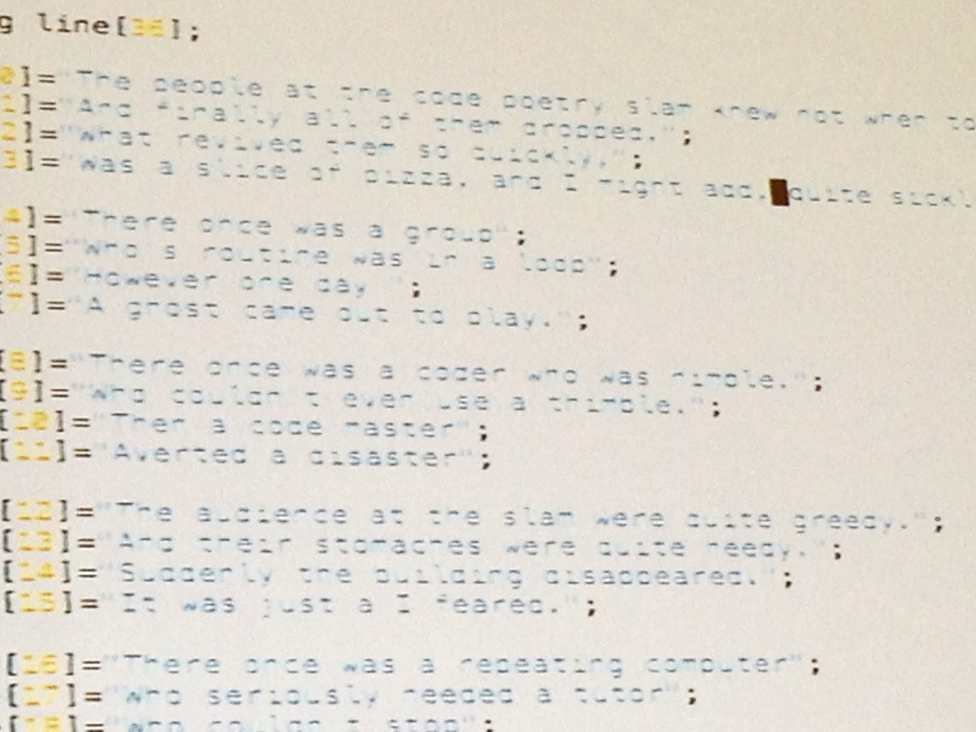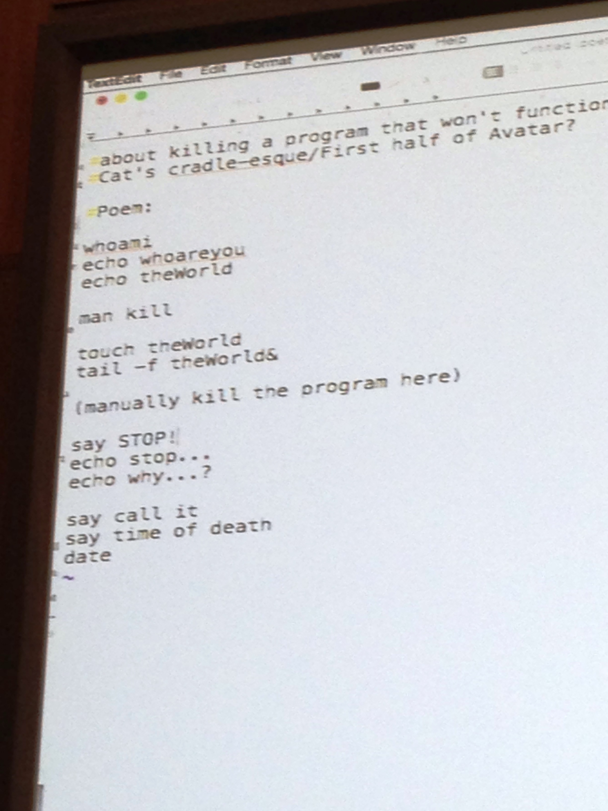 I am asking my friends what computer languages these poems were written in, so stay tuned for updates.
