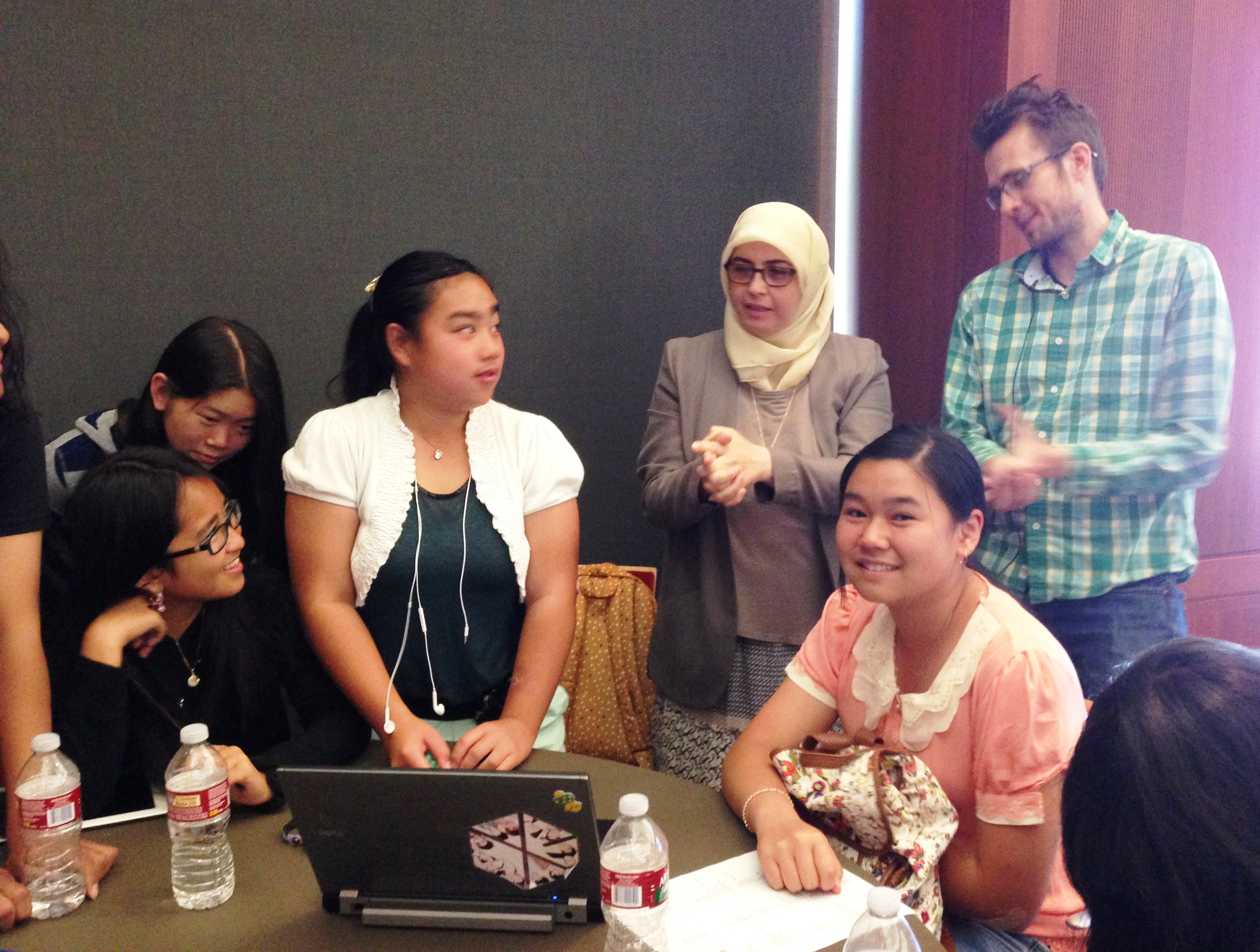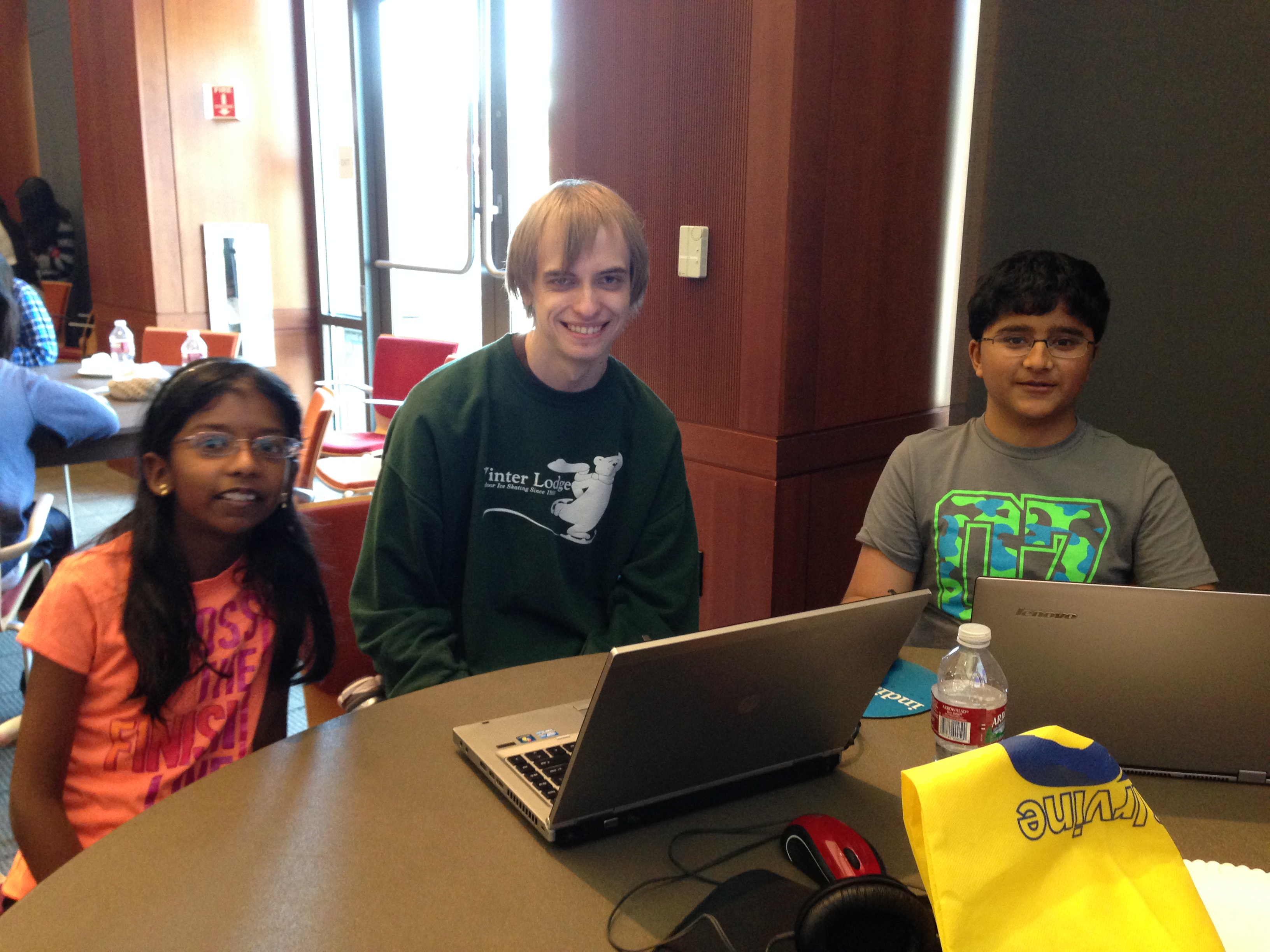 Table 1 included tw0-time Stanford Code Poetry Slam participant Julian Bliss and “two novice coders and amateur poets” (yes, that’s how these kids described themselves). Both students read about the event in the Cupertino Courier and came ready to learn and work. (See more of Julian’s work here and here.)
