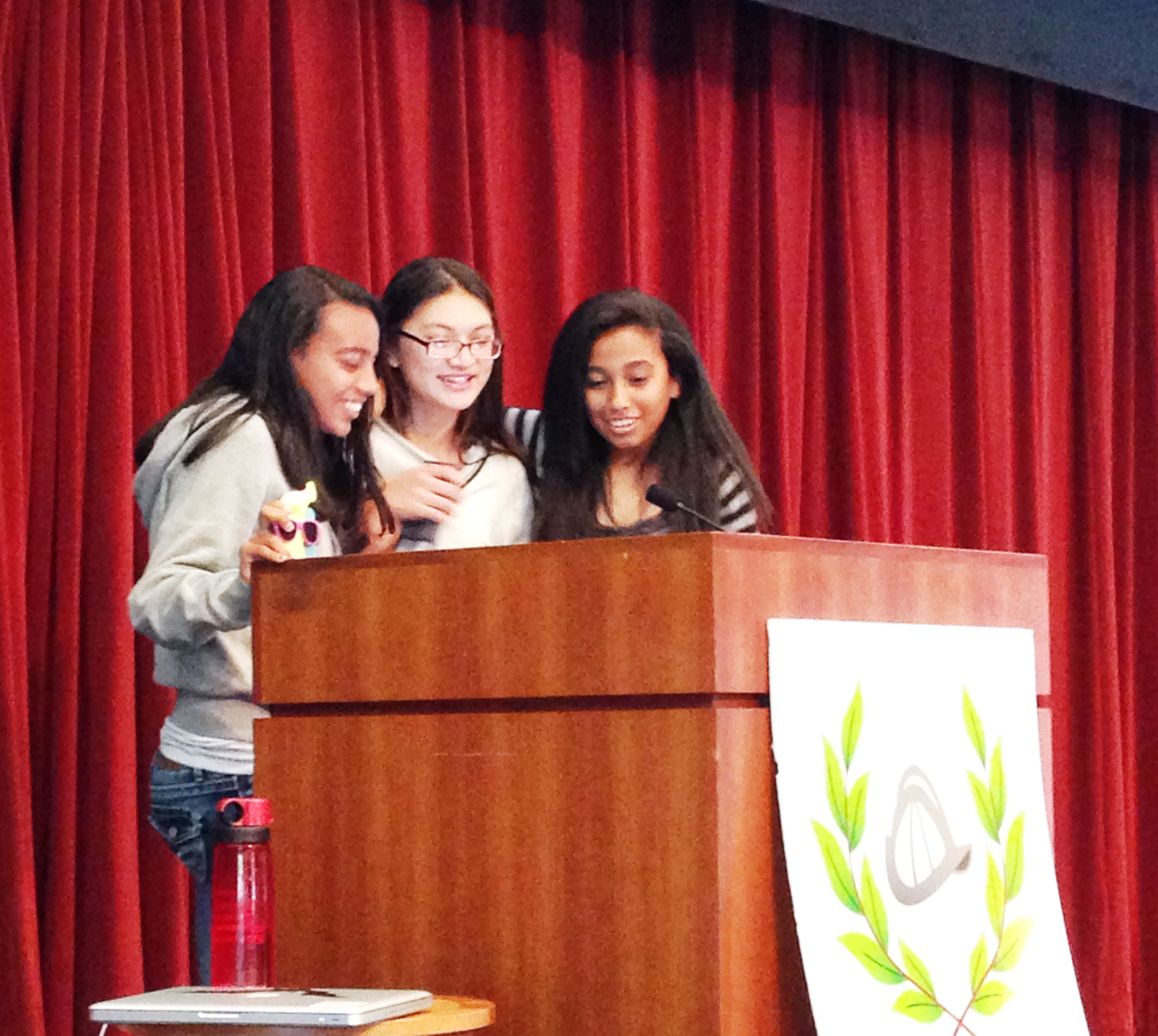 We had some technical difficulties projecting Table 4’s poem on the screen, but they did a fine job and had the audience laughing. You can see them working on their piece with Ms. M and Ben.