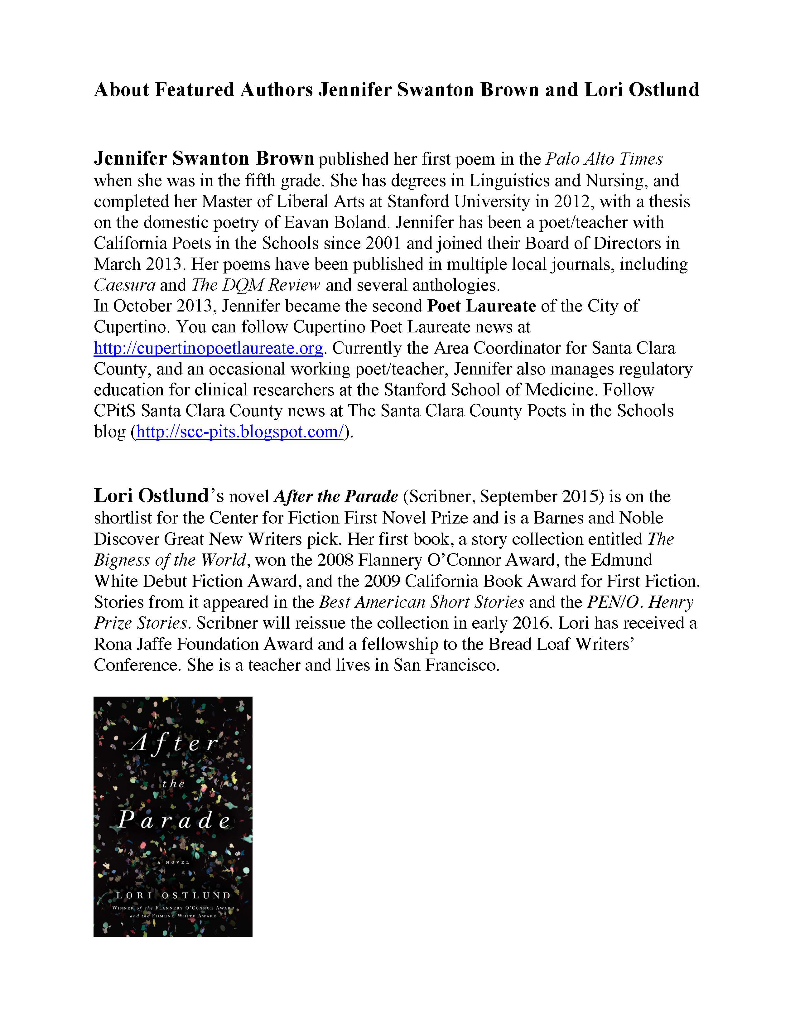 Friday I attended a lovely reading of Peninsula Literary, a quarterly reading in Palo Alto. Here’s a bit of background: “Carrie Harper Hechtman has been a curator at Peninsula Literary for six years. Her poetry appeared recently Meridian and is forthcoming in Denver Quarterly. She holds an MFA from University of San Francisco.” The readings take place in the fine Palo Alto art gallery, Gallery House, amidst paintings by Maura Carta and ceramics by Thomas Arakawa. It’s a great place for a reading and the format is welcoming and comfortable.